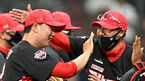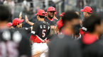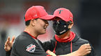 [OSEN=수원,박준형 기자] KT가 LG 3연전 스윕의 기세를 그대로 이었다.KT 위즈는 22일 수원KT위즈파크에서 열린 2022 신한은행 SOL KBO리그 NC 다이노스와의 시즌 첫 맞대결에서 4-3으로 승리했다.경기종료 후 KT 장성우 포수와 김재윤 마