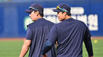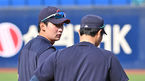 [OSEN=대구, 이석우 기자] 22일 대구 삼성라이온즈파크에서 ‘2022 신한은행 SOL KBO리그’ 삼성 라이온즈와 롯데 자이언츠의 경기가 열린다.롯데 자이언츠 래리 서튼 감독(왼쪽)이 코치들과 삼성 라이온즈 선수들의 훈련을 지
