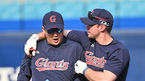[OSEN=대구, 이석우 기자] 22일 대구 삼성라이온즈파크에서 ‘2022 신한은행 SOL KBO리그’ 삼성 라이온즈와 롯데 자이언츠의 경기가 열린다.롯데 자이언츠 김민수가 한동희와 얘기를 하며 훈련을 위해 외야로 나가고 있다. 2022