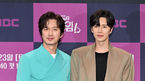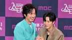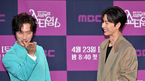 [OSEN=민경훈 기자] 22일 오후 서울시 마포구 상암 MBC 골든마우스홀에서 MBC 새 토일드라마 ‘지금부터, 쇼타임!’ 제작발표회가 진행됐다.무대 위에서 배우 정준호가 박해진이 포토타임을 갖고 있다. 22.04.22/rumi@osen.co.kr