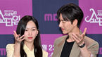 [OSEN=민경훈 기자] 22일 오후 서울시 마포구 상암 MBC 골든마우스홀에서 MBC 새 토일드라마 ‘지금부터, 쇼타임!’ 제작발표회가 진행됐다.무대 위에서 배우 박해진, 진기주가 포토타임을 갖고 있다. 22.04.22/rumi@osen.co.kr