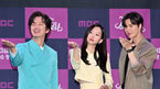 [OSEN=민경훈 기자] 22일 오후 서울시 마포구 상암 MBC 골든마우스홀에서 MBC 새 토일드라마 ‘지금부터, 쇼타임!’ 제작발표회가 진행됐다.무대 위에서 배우 정준호, 박해진, 진기주가 포토타임을 갖고 있다. 22.04.22/rumi@osen.co