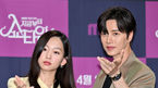 [OSEN=민경훈 기자] 22일 오후 서울시 마포구 상암 MBC 골든마우스홀에서 MBC 새 토일드라마 ‘지금부터, 쇼타임!’ 제작발표회가 진행됐다.무대 위에서 배우 박해진, 진기주가 포토타임을 갖고 있다. 22.04.22/rumi@osen.co.kr