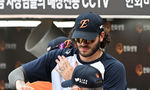 [OSEN=대전, 이대선 기자] 23일 오후 대전 한화생명볼파크에서 2025 신한 SOL Bank KBO리그 한화 이글스와 SSG 랜더스의 경기가 열렸다.한화는 황준서, SSG은 화이트를 선발로 내세웠다.경기에 앞서 한화 폰세가 김경문 감독과 하이파이