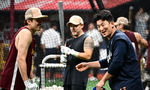 [OSEN=고척, 조은정 기자]26일 오후 서울 고척스카이돔에서 ‘2025 신한 SOL Bank KBO리그’ 키움 히어로즈와 한화 이글스의 경기가 열린다.키움은 알칸타라, 한화는 류현진을 선발로 내세웠다.한화 최재훈이 키움 오선진과 대화를 하