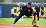 [OSEN=잠실, 조은정 기자]27오후 서울 잠실구장에서 ‘2025 신한 SOL Bank KBO리그’ 두산 베어스와 삼성 라이온즈의 경기가 열린다.두산은 윤태호, 삼성은 가라비토를 선발로 내세웠다.두산 박준순이 수비 훈련을 하고 있다. 2025.08.27 /