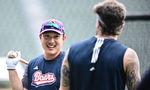 [OSEN=잠실, 조은정 기자]27오후 서울 잠실구장에서 ‘2025 신한 SOL Bank KBO리그’ 두산 베어스와 삼성 라이온즈의 경기가 열린다.두산은 윤태호, 삼성은 가라비토를 선발로 내세웠다.두산 박계범이 훈련 중 미소를 짓고 있다. 2025.08