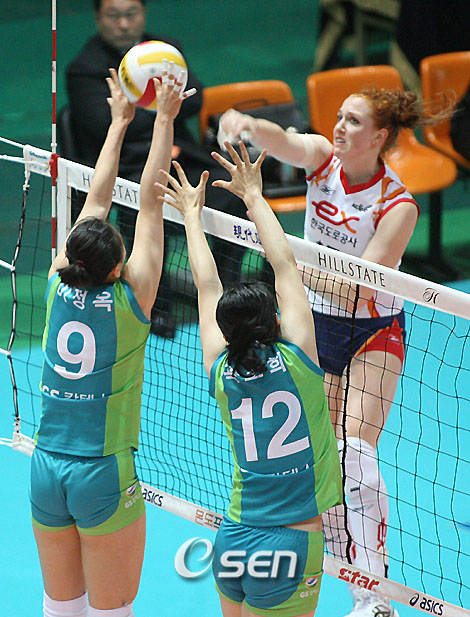 구미 한국도로공사가 인천 GS칼텍스에 완승을 거두고 다시 2위 자리를 탈환했다. 한국도로공사는 23일 서울 올림픽공원 제2체육관에서 열린 힐스테이트 2006~2007 V리그 여자부 중립경기에서 레이첼 밴메터(27득점, 6디그)와 한송이(12득점, 7디그)의 활약을 앞세워 GS칼텍스를 3-0(25-19 25-22 25-14)으로 물리쳤다. 이로써 한국도로공사는 12승 7패, 승점 12를 기록하며 수원 현대건설을 3위로 끌어내리고 다시 2위 자리에 올랐다. 특히 이날 GS칼텍스가 패하며 5승 14패가 되면서 한국도로공사와 현대건설 모두 남은 경기에 관계없이 3강까지 주어지는 포스트시즌 진출권을 확보했다. 한국도로공사는 1세트 16-15의 박빙 승부에서 레이첼의 2점짜리 백어택으로 순식간에 점수차를 3점으로 벌리며 승기를 잡았다. 이어 18-16에서 김지현(9득점, 2블로킹, 4디그)의 이동공격과 상대 김민지(10득점, 10디그)의 백어택 공격 실패, 레이첼의 오픈 공격 성공, 임유진(3득점, 3디그)의 블로킹, 상대 안드레이아 스포르진(9득점, 7디그)의 이동공격 실패를 묶어 연속 5득점을 올리며 23-16까지 달아난 끝에 첫 세트를 25-19로 잡았다. 2세트에서도 17-15 상황에서 한송이의 오픈 공격을 시작으로 연속 5득점하며 22-15까지 달아난 끝에 GS칼텍스의 막판 추격을 22점으로 끊으며 세트 스코어 2-0을 만든 한국도로공사는 3세트에서는 손쉽게 24-14 매치 포인트를 만든 뒤 최윤옥(1득점)의 서브를 상대 최유리(3디그)가 제대로 받지 못하면서 경기를 마감했다. ■ 23일 전적 △ 서울 올림픽 (여자부) 구미 한국도로공사 3 (25-19 25-22 25-14) 0 인천 GS칼텍스 ▲ 한국도로공사 = 레이첼 밴메터(27득점, 6디그) 한송이(12득점, 7디그) 김지현(9득점, 2블로킹, 4디그) 임유진(3득점, 3디그) 이윤희(3득점) ▲ GS칼텍스 = 나혜원(11득점, 11디그) 김민지(10득점, 10디그) 안드레이아 스포르진(9득점, 7디그) 이정옥(9득점, 7디그) ■ 중간 순위 (23일 현재, 여자부) ① 천안 흥국생명 16승 3패 (승점 16) 1.119 / 2.208 ② 구미 한국도로공사 12승 7패 (승점 12) 1.058 / 1.375 ③ 수원 현대건설 11승 7패 (승점 11) 1.052 / 1.323 ④ 인천 GS칼텍스 5승 14패 (승점 5) 0.917 / 0.578 ⑤ 대전 KT&G 3승 16패 (승점 3) 0.868 / 0.385 ※ 승점 옆 숫자는 점수득실률 / 세트득실률. tankpark@osen.co.kr
