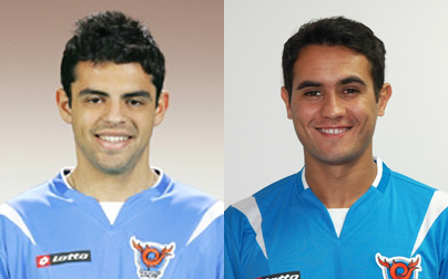 대구 FC의 '삼바 듀오' 루이지뉴(22)와 에닝요(26)가 팀의 상승세를 이끄는 주전 공격수로 확실하게 자리매김했다. 루이지뉴는 14일 수원 월드컵 경기장에서 벌어진 수원 삼성과의 삼성 하우젠 K리그 2007 6라운드 원정경기에서 후반 43분 김주환의 크로스에 이은 헤딩골로 팀의 1-1 무승부를 이끌어냈다. 특히 루이지뉴의 골 감각은 그야말로 절정. 10경기에서 7골이고 이중 3골이 정규리그에서 터져나왔다. 김동현(성남 일화) 김상록 데얀(이상 인천 유나이티드 FC) 우성용(울산 현대) 데닐손(대전) 등과 함께 선두권을 형성한 루이지뉴는 삼성 하우젠컵에서는 4골로 단독 선두를 내달리고 있다. 에닝요 역시 루이지뉴와 '승리를 부르는 파랑새' 이근호(22)와 함께 대구의 상승세를 이끄는 원동력이다. 대구 미드필드진의 취약점을 단번에 해결하며 팀의 플레이메이커로 떠오른 에닝요는 지난 11일 포항과의 삼성 하우젠컵 경기에서는 루이지뉴와 호흡을 맞추며 여러 차례 골 기회를 만들어내기도 했다. 또 에닝요은 수원과의 경기에서도 위협적인 프리킥을 차는 등 변병주 감독의 마음을 흡족하게 하고 있다. 이렇다보니 변병주 감독의 '삼바 듀오' 칭찬은 끊이지 않는다. 변병주 감독은 "루이지뉴가 터키 전지훈련부터 일찌감치 합류한 덕분에 팀의 조직적인 플레이와 잘 맞아들어가고 있다"며 "루이지뉴를 데려왔을 때 전에 대구에서 뛰었던 산드로 히로시(전남)를 연상했다. 지난 2월 결혼 때문에 시즌 초반 다소 좋지 않았지만 차츰 컨디션을 찾아가며 골이 나오고 있다"고 말했다. 또 변 감독은 "에닝요가 늦게 합류하는 바람에 아직 90분 풀타임을 소화할 수 있는 체력이 되진 않지만 컨디션이 급격하게 올라오고 있는 중"이라며 "시즌 초반 3연패로 고생했지만 에닝요와 루이지뉴의 조합으로 상승세를 타고 있다. 특히 삼성 하우젠컵 대회 성적이 좋은 만큼 정규리그보다 컵 대회에 초점을 맞출 것"이라고 밝혔다. tankpark@osen.co.kr 루이지뉴-에닝요=대구 FC 제공.