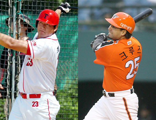 과연 최희섭(KIA)이 크루즈(한화)보다 잘할까. 지난 13일 대전구장. 두산-한화전이 열리기 직전, 한화 용병 좌타자 제이콥 크루즈(34)의 타격 훈련이 눈에 들어왔다. 마침 기자들 사이에 화제가 최희섭이어서 크루즈의 경력을 알아 보니 메이저리그 1라운드 지명 선수라고 한화 홍보팀은 설명해줬다. 1994년 샌프란시스코에 1라운드 지명된 크루즈는 1996년 빅리그로 승격됐다. 이후 클리블랜드-콜로라도-디트로이트-신시내티를 거쳐 한화로 왔다. 빅리그 9년 통산 성적은 409경기 176안타-19홈런-105타점-타율 2할 4푼 1리였다. 마이너 통산(11년) 성적은 타율 3할 6리에 87홈런-474타점이었다. 크루즈는 올 시즌 총액 30만 달러에 한화로 이적해, 타격 전부문에서 승승장구하고 있다. 14일까지 타율 3할 5푼 1리-8홈런-29타점에 삼진(15개)보다 볼넷(21개)이 더 많다. 이런 크루즈보다 최희섭은 5배를 훨씬 웃도는 조건(옵션 포함 15억 5000만원)에 KIA로 왔다. 나이만 최희섭이 6살 어릴 뿐, 같은 좌타자에다 커리어도 유사하다. 물론 '한국인 최초의 빅리그 타자 출신'이라는 최희섭의 스타성과 홍보 효과를 무시해선 안 된다. 그러나 최희섭과 크루즈의 계약 조건을 비교해 보면 용병 보유 한도 증가를 내심 선호할 수밖에 없는 구단들의 속사정이 이해될 만하다. sgoi@osen.co.kr 최희섭-크루즈.