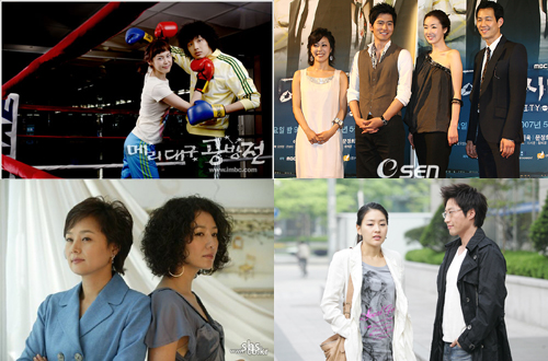 MBC와 SBS가 드라마왕국의 자리를 놓고 시청률 시소게임을 벌이고 있다. 절대왕자는 없다는 것을 증명하듯 엎치락뒤치락 주도권 경쟁을 벌이는 모습에서 긴장감마저 감돌고 있다. 먼저 지난해 ‘주몽’ 열풍에 이어 올해에는 ‘하얀거탑’, ‘고맙습니다’ 등을 대히트시키며 승승장구했던 MBC가 최근에는 평일과 주말 모두 고전을 면치 못하고 있는 상황이다. ‘주몽’ 후속으로 방송된 ‘히트’가 예상만큼 큰 반향을 불러일으키지 못한데 이어 이번 주부터 새롭게 방송되고 있는 월화미니시리즈 ‘신 현모양처’ 1,2회는 6.3%, 5.6%로 한자릿수 시청률을 기록하고 있는 것. 만화 같은 코믹 설정으로 시청자들의 반응이 매우 뜨거운 수목드라마 ‘메리대구 공방전’도 시청률은 한자릿수로 별다른 재미를 보지 못하고 있다. 또한 60억 원의 제작비를 투입하고 이정재, 최지우를 각각 8년, 3년 만에 브라운관으로 복귀시킨 주말특별기획 ‘에어시티’도 10%초반대로 겨우 체면치레를 하고 있는 정도다. 반면 SBS는 신이 났다. 그동안 이미연, 고소영, 한가인 등 인기 여배우들을 내세운 ‘사랑에 미치다’, ‘푸른물고기’, ‘마녀유희’ 등이 잇따라 참패하면서 울상을 지었지만 최근 다시 살아나고 있는 추세이기 때문이다. 먼저 월화드라마인 ‘내 남자의 여자’는 김수현 작가, 김희애 콤비가 만나 또 한번 대박 행진을 이어가고 있다. 30%대의 시청률을 기록하며 극중 대사와 패션스타일 등이 인기를 끌고 있는 것. 박신양을 내세운 수목드라마 ‘쩐의 전쟁’도 방송 2회 만에 시청률 20%를 돌파하며 무서운 기세로 올라가고 있다. 또한 이번 주 주말부터 새롭게 시작할 신은경 주연의 ‘불량커플’ 또한 아이를 낳기 위해 최고의 유전자를 찾아다닌다는 코믹한 상황설정과 대사로 벌써부터 기대를 모으고 있어 월화, 수목에 이어 주말까지 SBS가 시청률 우위를 점할 수 있을지 관심이 집중되고 있다. 한편 지금은 고전을 면치 못하고 있는 MBC도 6월 말 배용준, 문소리 주연의 ‘태왕사신기’가 방영을 기다리고 있고 ‘에어시티’ 또한 회를 거듭하며 흥미진진한 스토리가 벌어질 것으로 예상되기 때문에 섣불리 낙담하기에는 이르다. 또 각 방송사마다 시청률에서는 참패를 맞고 있는 작품들도 마니아팬층을 형성하며 좋은 반응을 얻고 있는 경우도 많아 시청률이라는 잣대만 놓고 실패라고 단정짓기에는 무리가 있다. 이처럼 돌고 도는 드라마왕국의 타이틀로 인해 방송사는 아슬아슬 명암이 엇갈리지만 시청자들은 다양한 장르의 작품을 골라볼 수 있는 선택권이 넓어져 보는 재미를 더하고 있다. hellow0827@osen.co.kr 왼쪽부터 시계방향으로 MBC '메리대구 공방전', '에어시티', SBS '쩐의 전쟁', '내 남자의 여자'.