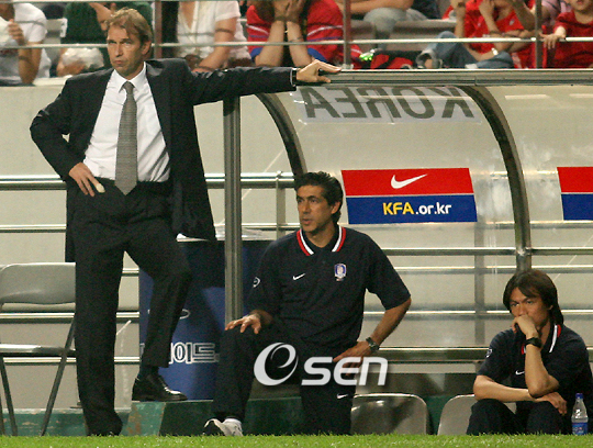 한국 축구대표팀이 다시 한번 '마찰라 쇼크'를 맛보며 8강 진출도 장담할 수 없게 됐다. 핌 베어벡 감독이 이끄는 한국 대표팀은 15일 인도네시아 자카르타 겔로라 붕카르노 스타디움에서 벌어진 2007 아시안컵 D조 2차전에서 전반 4분 김두현의 선제골을 지키지 못하고 동점골과 역전 결승골을 연달아 내주며 바레인에 1-2로 무너졌다. 지난 11일 사우디아라비아와의 경기에서 1-1로 비긴데 이어 한국에게 '오만 쇼크'를 안겼던 밀란 마찰라 감독이 이끄는 바레인 상대로 충격적인 패배를 당한 한국은 조 최하위로 떨어지며 8강 진출에 적신호가 켜졌다. 한국은 8강 진출을 자력으로 확정짓기 위해 오는 18일 홈팀 인도네시아와의 경기에서 2점차 이상 승리를 거둬야만 하는 어려운 지경에 빠졌다. 한국은 마찰라 감독이 이끄는 바레인을 상대로 이른 시간대에 선제골을 뽑아내며 경기 초반 흐름을 가져오는데 성공했다. 전반 4분 이천수의 아크 왼쪽 프리킥이 바레인 수비수 맞고 흐른 것을 이천수가 재차 올렸고 공은 상대 수비수를 맞고 골문 쪽으로 달려들던 김두현에게 향했다. 김두현은 이를 곧바로 오른발 발리 슈팅으로 연결, 이른 시간대에 선제골을 뽑아냈다. 하지만 선제골에 이어 추가골을 뽑지 않은 한국은 상승세 흐름을 더이상 이어가지 못했다. 전반 30분 김두현의 오른쪽 코너킥을 김상식이 페널티 왼쪽지역으로 달려들며 발을 맞추려고 했으나 실패했고 전반 37분에는 이천수의 패스를 받은 염기훈의 왼발 크로스를 이동국이 받기 위해 달려들어갔지만 바레인 수비수에 의해 걷어내어지며 추가골 기회를 만들지 못했다. 추가골을 일찌감치 만들어내지 못한 한국은 오히려 위기를 맞았고 전반 43분 동점골을 내줬다. 이동국의 파울로 얻은 프리킥을 센터서클에서 모하메드 하산이 올린 것이 곧바로 페널티 지역으로 뛰어들던 살만 알리에게 향했고 알리가 이를 왼발 슈팅, 한국의 골망을 흔들었다. 한순간 수비의 뒷공간이 뚫린 결과였다. 이른 시간 선제골을 지키지 못하고 전반을 1-1로 마친 한국은 후반 7분 다시 한번 스루 패스로 수비 뒷공간이 뚫렸으나 바레인 공격수의 발에 맞지 않으며 위기를 벗어난 뒤 후반 9분부터 이동국과 김두현의 연속 슈팅으로 바레인 골문을 두드렸으나 두차례 수비수를 맞고 나오는 불운 속에 다시 앞서나갈 수 있는 기회를 놓쳤다. 후반 21분 이동국을 빼고 조재진을 투입하며 공격을 강화한 한국은 후반 23분 이호 대신 김정우를 투입했고 후반 31분에는 슈팅 도중 쥐가 나는 부상을 입은 이천수 대신 우성용까지 내보내며 투톱 시스템으로 전환했으나 크로스도 시종일관 부정확했다. '마찰라 쇼크'가 현실로 다가온 것은 후반 39분. 김정우의 패스 미스에서 비롯된 위기에서 이스마엘 압둘라디프가 아크 정면에서 때린 슈팅으로 한국의 골망이 출렁였고 한국을 응원하던 교민들의 열띤 응원이 잠잠해지고 말았다. 승점 3을 따내려다 오히려 역전패 위기에 몰린 한국은 승점 1이라도 따내기 위해 동점골을 노렸지만 버티기 작전으로 나온 바레인의 골문을 열지 못하고 다시 한번 마찰라 감독의 마법에 무릎을 꿇고 말았다. ■ 15일 전적 ◆ 아시안컵 D조 2차전 대한민국 1 (1-1 0-1) 2 바레인 ▲ 득점 = 김두현 1호(전4분·대한민국) 살만 알리 1호(전43분,도움 모하메드 하산) 이스마엘 압둘라디프 1호(후39분·이상 바레인) ■ 바레인전 출전 명단 ▲ GK = 이운재 ▲ DF = 김동진 김진규 강민수 송종국 ▲ MF = 이호(김정우 후23) 김두현 김상식 ▲ FW = 이천수(우성용 후31) 이동국(조재진 후21) 염기훈 ■ 아시안컵 중간 순위 (15일 현재) ▲ A조 ① 이라크 1승 1무 (승점 4) 득 4, 실 2 / +2 ② 태국 1승 1무 (승점 4) 득 3, 실 1 / +2 ③ 호주 1무 1패 (승점 1) 득 2, 실 4 / -2 ④ 오만 1무 1패 (승점 1) 득 1, 실 3 / -2 ▲ B조 ① 일본 1승 1무 (승점 4) 득 4, 실 2 / +2 ② 베트남 1승 1무 (승점 4) 득 3, 실 1 / +2 ③ 카타르 2무 (승점 2) 득 2, 실 2 / 0 ④ UAE 2패 (승점 0) 득 1, 실 5 / -4 ▲ C조 ① 중국 1승 1무 (승점 4) 득 7, 실 3 / +4 ② 이란 1승 1무 (승점 4) 득 4, 실 3 / +1 ③ 우즈베키스탄 1승 1패 (승점 3) 득 6, 실 2 / +4 ④ 말레이시아 3패 (승점 0) 득 1, 실 10 / -9 ▲ D조 ① 사우디아라비아 1승 1무 (승점 4) 득 3, 실 2 / +1 ② 인도네시아 1승 1패 (승점 3) 득 3, 실 3 / 0 ② 바레인 1승 1패 (승점 3) 득 3, 실 3 / 0 ④ 대한민국 1무 1패 (승점 1) 득 2, 실 3 / -1 tankpark@osen.co.kr
