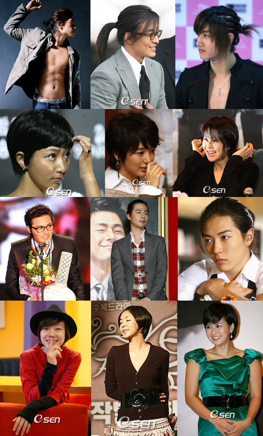 여자들은 점점 보이시해지고 남자들은 점점 예뻐진다. 갑자기 무슨 소리? 스타들이 선도하는 헤어 스타일 이야기다. 트렌드를 앞서가는 요즘 스타들을 보면 공통적으로 여자스타들의 헤어스타일은 점점 짧아지고 남자스타들의 헤어스타일은 점점 길어지고 있다. 패션 쪽도 여자는 보이시 룩, 남성들은 정장에도 라인을 살려 ‘여성을 입는다’는 표현이 대두되고 있는데 헤어스타일에서도 이런 현상은 예외가 없다. 귀여움과 세련됨, 섹시함을 동시에 표현해 낼 수 있는 트위기컷, 단발 스타일은 올 초부터 여성 스타들이 가장 사랑한 스타일이었다. 단발은 곧 대중적인 유행으로 번졌고 올 들어 연예인, 일반인 할 것 없이 여자들의 가장 사랑받는 스타일이 되고 있다. 웬만한 미녀 스타들은 다 단발머리를 했다고 해도 과언이 아니다. 고현정을 필두로 최근 가장 사랑받는 여자스타로 떠오른 윤은혜도 긴 머리를 싹둑 자르고 특유의 보이시 함과 세련미를 극대화 시켰다. 장진영은 얼마 전 드라마 시사회에 숏 컷트 가발을 쓰고 나타나 색다른 분위기를 연출했다. 이들 뿐만이 아니다. 이혜영, 최정윤, 임수정, 김혜수, 강성연 등 셀 수 없이 많은 여자스타일이 단발머리를 하고 나타나 ‘단발머리’ 열풍을 주도해 가고 있다. ‘멋 좀 낼 줄 안다’는 여자 스타들이 앞 다퉈 긴 머리를 잘라버리고 숏 컷트를 입었다면 잘생기고 미끈한 몸을 가졌으며 트렌드를 앞서간다 싶은 남자 스타들은 너나 할 것 없이 긴 머리를 선보이고 있다. 머리를 길게 기르고 위쪽으로 올려 묶는 포니테일, 일명 꽁지머리를 하고 카메라 앞에 선 남자스타들에게서는 섹시함과 동시에 은근한 보호 본능까지 느껴진다. 그 대표적인 스타가 월드투어와 독일에서의 영화 작업을 끝내고 오랜만에 국내 팬들에게 모습을 드러낸 비다. 비는 한 청바지 광고에서 꽁지머리를 서로 교차시키며 멋스럽게 묶어 올린 꽁지머리로 여심을 흔들었다. 미끈한 뒤태와 신경 안 쓴 듯 질끈 동여맨 머리는 도시적인 매력과 함께 섹시함을 느끼게 했다. 또 요즘 가장 관심을 모으고 있는 한류스타 배용준도 포니테일 스타일로 역사상 가장 섹시한 왕을 그려내고 있다. 사극에서 상투를 틀고 나오는 남자스타들은 많이 봤지만 배용준 처럼 수염을 붙이지 않고 긴 머리를 휘날리며 말을 달리는 만화 같은 그림을 만들어낸 배우도 없었다. 비, 배용준 뿐만 아니라 MBC ‘커피프린스’의 인간 조명 김재욱도 꽁지머리로 세련됨을 표현하며 새로운 패션 아이콘으로 떠올랐고 장동건, 동방신기의 최강창민, 조인성, 소지섭 등 꽁지머리를 선보이며 올 겨울 남성들에게 ‘나도 머리 한 번 길러봐?’라는 생각이 들게 만들고 있다. 여자들의 사회 진출이 한층 더 활발해지고 더 이상 남성들의 보호만을 수동적으로 기다리는 긴 머리의 청순가련한 여성상이 아닌 자기 주도적으로 변화되고, 반대로 남성들도 외모를 가꾸고 패션에 투자하는 것이 자연스러운 일처럼 되고 있는 메트로섹슈얼이 대두됨에 따라 이런 현상이 자연스럽게 헤어스타일에도 영향을 미치고 있다. 여자는 꼭 긴 머리여야 예쁘다는 선입견, 남자는 짧은 헤어스타일이 깔끔하고 남자답다는 편견을 버리는 그 순간 나를 감싸고 있는 수많은 벽 중 하나를 깨부수는 듯 한 쾌감마저 맛 볼 수 있을 것이다. happy@osen.co.kr 비 케빈클라인, 김재욱 MBC 제공.