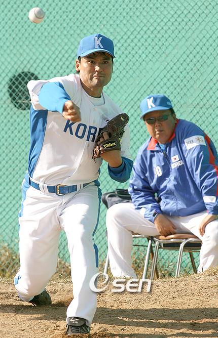 베이징 올림픽 한국 야구대표팀의 마운드를 총괄하고 있는 선동렬 수석코치는 지난 27일 대만 타이베이 공항 입성 직후 "머리가 아프다. 걱정은 걱정이다"라고 말문을 열었다. 선 코치는 대회는 코 앞인데 "아직도 계산이 안 된다"라며 필승 마운드 공식이 좀처럼 떠오르지 않는 대표팀의 현실을 우려한 것이다. 또 선 코치는 일본 언론과 인터뷰서 "투수력만 놓고 보면 지금 일본 대표팀이 WBC(월드 베이스볼 클래식) 우승 멤버보다 강하다"고 평가했다. 실제로 일본은 WBC 당시 두 차례나 한국전 선발로 등판했던 잠수함 투수 와타나베(롯데)가 불펜 미들맨으로 내려갔을 만큼 선발진이 두텁다. 에이스 다르빗슈(니혼햄)와 좌완 나루세(롯데) 중 한 명의 한국전 선발이 확실시되고, 우에하라(요미우리)-후지카와(한신)-이와세(주니치)의 막강 불펜 3종 세트는 5회부터 대기시킬 방침으로 알려졌다. 더군다나 한국은 일본전(12월 2일)에 앞서 대만전(12월 1일)을 이겨야 하는 부담감까지 있다. 선 코치 역시 "대만전이 결승전이라 생각한다"라고 대만이 '발등의 불'이란 시각을 드러냈다. 그러나 "이겨야지"를 되뇌이던 선 코치가 필승해법 찾기에 골몰하는 장면과 대조적으로 대표팀 주장이자 마운드의 키맨인 박찬호(34)는 여유만만이었다. 타이베이 입국 순간부터 대만 언론과 현지 팬들의 집중 표적이 되며 유명세를 치렀지만 박찬호는 예전의 예민함과 달리 느긋하게 대응했다. 대표팀의 단체 사진 촬영 때도 동료들을 리드했고, 인터뷰 역시 후배 투수 한기주(KIA)를 "빠른 볼, 이리로 와 봐"라고 불러내며 어깨에 손을 얹고, 함께 답변에 응했다. 답변에서도 박찬호는 "WBC보다 더 부담되지만 모두 노력했고, 마음이 하나가 됐으니 좋은 시간이 될 것"이라고 낙관했다. 특히 연습 경기의 불안감에 대해서도 "지금 컨디션 100%인 선수가 어디 있느냐?"라며 빅리그 100승 투수의 관록을 보였다. 무엇보다 박찬호는 1998년 방콕 아시안게임과 2006년 WBC 등 참가한 국제전에서 불패의 투구를 펼친 경험을 갖추고 있다. 선 코치의 불안과 박찬호의 자신감은 곧 대표팀이 처한 양면적 현실이기도 하다. 긴장을 늦추지 않되 승리를 확신하는 두 가지 상반된 기류가 대표팀의 투지를 자극하고 있다. sgoi@osen.co.kr 박찬호의 불펜피칭을 뒤에서 지켜보는 선동렬 투수코치. . . . .