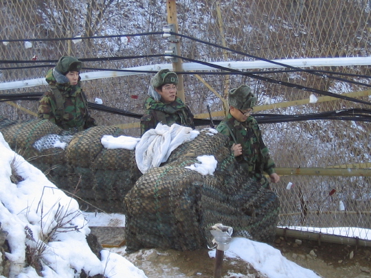 SBS ‘이경규, 김용만의 라인업’의 멤버들이 2008년 새해를 맞이해 휴전선 최전방 부대를 방문한다. ‘라인업’ 멤버들이 방문한 곳은 휴전선 155마일 중 가장 최북단에 위치한 강원도 화천의 칠성부대. 이경규가 이끄는 규라인 멤버들은 국군 장병들과 최북단 GOP에서 철책 경계근무에 나섰고, 김용만이 이끄는 용라인 멤버들은 장병들을 대신해 군화를 깨끗하게 닦아야 하는 미션이 받았다. 이경규와 규라인 멤버들은 철책 경계 근무에 임해 북녘 땅을 보고 잠시 감상에 젖기도 하고, GOP 초소에서 장병들을 위해 준비한 치킨과 피자를 나눠 먹기도 했다. 100켤레의 군화를 닦아야 하는 김용만과 용라인 멤버들은 일명 ‘물광’ ‘불광’으로 불리는 화려한 개인기가 동원된 군화닦기 대결을 펼쳤다. 또 라인업 멤버들은 장병들을 위한 위문공연과 군인들의 다양한 고민을 해결하기 위한 상담을 하기도 했다. 최전방 부대에서 병영 체험기를 그린 ‘라인업’은 5일 오후 6시 40분에 방송된다. pharos@osen.co.kr 최전방 부대를 방문해 철책 경계 근무에 나선 이경규(가운데)와 붐(왼쪽).