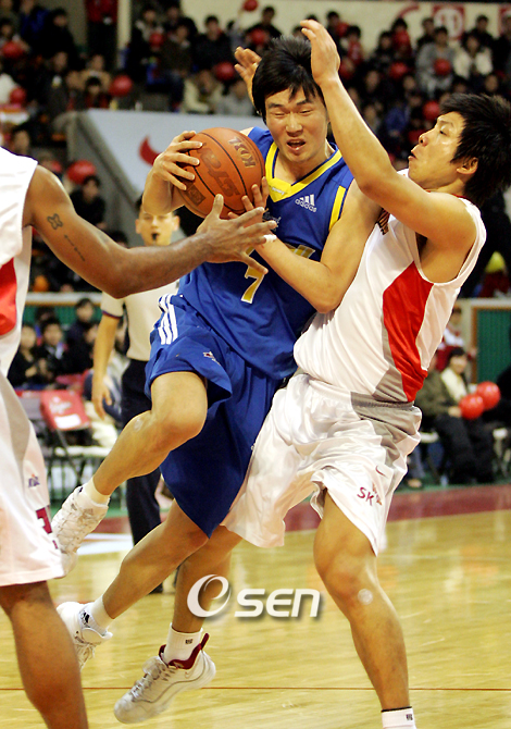 이상민이 2쿼터서 퇴장을 당한 삼성이 수비를 바탕으로 '서울 라이벌' SK에 귀중한 승리를 거두었다. 안준호 감독이 이끄는 삼성은 19일 서울 잠실학생체육관에서 열린 2007~2008 SK 텔레콤 SK와 원정경기서 8개의 어시스트를 배달한 강혁(9득점)과 '더블-더블'을 기록한 빅터 토마스(29득점, 10리바운드)의 활약에 힘입어 84-77로 승리했다. 이날 승리로 삼성은 2연승을 거두며 함께 승리를 거둔 전주 KCC와 3위 싸움을 이어갔다. 삼성은 이날 '노장' 이상민이 2쿼터 8분55초경 퇴장을 당하며 분위기가 SK쪽으로 흘렀지만 수비를 통해 SK의 턴오버를 유발했고 이를 모두 득점으로 연결해 3쿼터서만 32점을 몰아쳐 승리를 거두었다. SK와 삼성은 서울 라이벌답게 초반부터 치열한 경기 양상을 보였다. 최근 5경기서 나란히 4승1패의 호성적을 거두고 있던 SK와 삼성은 1쿼터부터 총력전을 통해 경기에 임했다. SK는 테런스 레더가 1쿼터서 9득점을 기록한 삼성에 20-15로 뒤졌지만 2쿼터가 시작하며 '식스맨' 김기만이 3점슛 2개 포함 연속 8득점을 올리며 경기를 원점으로 돌렸다. 기세가 오른 SK는 리바운드를 따내며 골밑에서 우위를 점했고 삼성의 전면 강압수비를 뚫고 2쿼터 4분경 30-24로 점수를 벌렸다. 그리고 2쿼터 8분55초경 삼성의 이상민이 심판 판정에 불만을 품고 거칠게 항의하다 퇴장 당한 후 자유투로만 4득점을 기록하며 분위기 반전에 성공했다. 하지만 3쿼터서 삼성은 이상민이 없는 상황을 딛고 분발했다. 삼성은 풀코트 프레싱을 통해 SK의 턴오버를 유발했고 이규섭과 토마스의 3점슛이 폭발하며 득점으로 연결해 3쿼터 8분경 65-49로 점수를 벌렸다. 삼성의 공세는 계속됐다. 이상민 대신 들어온 이원수는 강혁과 함께 빠른 스피드를 이용해 SK의 골밑을 파고들었고 3쿼터를 69-55로 리드했다. SK도 쉽게 무너지지는 않았다. 4쿼터 시작하며 김기만이 3점슛을 시작으로 연속 7득점을 올리며 69-63으로 점수차를 좁히며 추격을 시작한 SK는 리바운드서 대등한 싸움을 벌이며 역전을 노렸다. 브랜든 로빈슨이 골밑에서 득점을 올리며 4쿼터 7분17초경 79-73까지 추격에 성공했다. 하지만 삼성은 더이상 추격을 허용하지 않았다. 레더와 토마스가 골밑에서 안정적인 득점을 통해 점수차를 유지했고 결국 기분좋은 승리를 거두었다. ■ 19일 전적 ▲ 서울학생체 서울 SK 77 (15-20 24-17 16-32 23-15) 84 서울 삼성 10bird@osen.co.kr 3쿼터 SK 이병석이 삼성 강혁의 돌파 때 파울을 범하고 있다. /잠실학생체=황세준 기자 storkjoon@osen.co.kr
