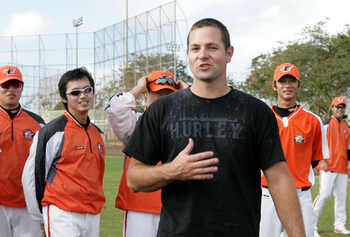한화의 새로운 외국인 선수 덕 클락(32, 외야수)과 브래드 토마스(31, 투수)가 하와이 캠프에 합류했다. 한화는 31일 새로운 외국인 선수 덕 클락과 브래드 토마스가 같은 날 한화의 스프링 캠프지인 하와이 호누룰루에 합류했다고 밝혔다. 도착 직후 브래드 토마스는 가족과 함께 훈련구장인 센트럴 오아우 리지널 파크를 방문했다. 이어 그는 김인식 감독과 인사하고 훈련 중인 선수들을 일일이 찾아 한명씩 악수를 청하는 등 빠른 융화를 위해 노력하는 모습을 보였다. 브래드 토마스는 "어떤 보직이 주어지든 팀의 승리를 위해 최선을 다하겠다"는 소감을 남겼다. 반면 홀로 캠프에 합류한 덕 클락은 "팀의 첫 훈련에 합류하는 만큼 야구에만 집중하기 위해 홀로 왔다"고 말했다. 그는 "메이저리그에 도전하는 것 같이 흥분 된다"고 운을 뗀 뒤, "한화유니폼을 입게 된 고마움을 야구장에서 맘껏 보여 주겠다"고 자신감을 드러냈다. 한화는 지난 15일부터 3월 5일까지 50일 간 하와이 전지훈련에 임하고 있다. 다른 팀과 실전도 이동도 없는 '나홀로 캠프'를 하고 있는 한화에 두 외국인 선수의 합류가 어떤 영향을 미칠 지 기대되고 있다. stylelomo@osen.co.kr 하와이 캠프에 합류한 브래드 토마스=한화 이글스 제공.