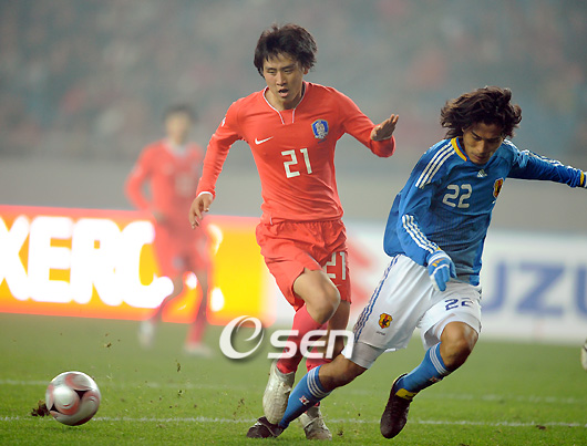 한국 북한 일본 중국이 패권을 다투는 '동아시아축구선수권대회'서 한국-일본이 23일 중국 충칭 올림픽스포츠센터에서 대회 우승을 놓고 일전을 벌여 1-1 무승부를 기록했다. 한국은 우승을 위해 북한과 중국의 경기결과를 기다려야 한다. 북한이 중국에 2점차 이상의 승리를 거두면 북한이 우승을 하게 된다. 후반 구자철이 일본 문전을 돌파하고 있다./ 충칭=손용호 기자spjj@osen.co.kr