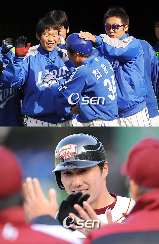 [OSEN=이상학 객원기자] 결정적인 홈런을 주고 받은 삼성과 우리 히어로즈가 무승부를 기록했다. 15일 목동구장에서 치러진 프로야구 시범경기에서 삼성과 우리 히어로즈가 8-8로 승부를 가리지 못했다. 결정적인 홈런을 주고 받으며 끝내 승부를 가리는 데 실패했다. 삼성은 8회초 터진 최형우의 결정적인 3점 홈런으로 승부를 가르는가 싶었지만 히어로즈도 9회말 2사 후 전근표의 극적인 2점 홈런으로 동점을 만들었다. 삼성은 5-5로 팽팽한 접전이 펼쳐지던 8회초 2사 1·3루에서 최형우가 히어로즈의 마무리 후보 김성현으로부터 5구째 공을 그대로 공략, 오른쪽 담장을 넘기는 비거리 110m 짜릿한 결승 3점 홈런을 터뜨려 승부를 가르는가 싶었다. 5-0으로 앞서다 5-5 동점을 허용한 삼성은 8회초 선두타자 이영욱이 히어로즈 조용훈으로부터 우전 안타로 출루하며 찬스를 만들었다. 박석민이 삼진, 양준혁이 중견수 뜬공으로 아웃됐지만 강봉규가 우전안타를 터뜨려 2사 1·3루 찬스를 만든 뒤 7회초 대주자로 나왔던 최형우가 히어로즈의 바뀐 투수 김성현을 상대로 볼카운트 2-2에서 5구째를 공략해 3점포를 작렬시켰다. 하지만 히어로즈도 결코 만만한 팀이 아니었다. 9회말 유선정의 볼넷 이후 2아웃을 당한 히어로즈는 정수성의 3루타로 1점을 추격하더니 전근표가 삼성 고졸신인 최원제로부터 2-3 풀카운트에서 6구째를 통타해 오른쪽 담장을 훌쩍 넘기는 비거리 125m짜리 극적인 동점 2점포를 작렬시키며 승부를 원점으로 만들었다. 히어로즈는 동점을 만든 뒤 나온 오윤이 삼진을 당해 역전에는 실패했다. 1회초 톱타자로 선발출장한 허승민의 주루플레이로 손쉽게 1점을 선취한 삼성은 3회초 히어로즈 신인 민성기로부터 대거 4점을 뽑으며 승기를 잡았다. 선두타자로 등장한 4번 심정수가 9구 만에 볼넷을 얻으며 출루했고, 6번 박한이의 우중간 안타와 7번 이여상의 3루쪽 내야 안타로 1사 만루 찬스를 만들었다. 이어 8번 현재윤이 우전안타로 3루 주자를 홈으로 불렀고, 김재걸이 주자일소 중월 3타점 2루타를 터뜨리며 점수를 5-0으로 벌렸다. 하지만 히어로즈의 추격전도 대단했다. 4회말 유재신이 3루쪽 기습번트 성공 후 상대 실책으로 2루까지 나간 뒤 송지만의 중전 안타로 1점을 얻으며 1점을 만회했다. 그리고 6회말 바뀐 투수 백정현을 상대로 4점을 한꺼번에 뽑으며 동점을 만들었다. 1사 후 유재신의 우전안타와 송지만-전근표-오윤의 3연속 볼넷이 나와 밀어내기 1점을 얻었다. 백정현이 강판된 후에도 김문수가 폭투를 하며 1점을 얻은 히어로즈는 강정호의 좌중간 2타점 적시타로 동점을 만드는 집중력을 발휘했다. 삼성은 선발 윤성환이 4이닝 3피안타 1볼넷 3탈삼진 1실점으로 호투했다. 제이콥 크루즈와 현재윤이 4타수 2안타, 박한이가 5타수 2안타로 활약했다. 그러나 마지막 투수 최원제가 리드를 지키지 못하고 1이닝 1피안타 1볼넷 3실점으로 블론세이브를 기록하고 말았다. 히어로즈는 조용훈이 ⅔이닝 2실점했고, 김성현도 결승 홈런을 맞는 등 불펜이 와르르 무너졌다. 타선에서는 유재신이 5타수 2안타, 강정호가 4타수 2안타 2타점 2득점을 기록했다. 히어로즈는 안타 9개로 8득점하는 집중력을 보였다. 3점 홈런을 날린 뒤 환영받는 최형우(위)-9회말 동점 투런을 날리고 홈인한 전근표.
