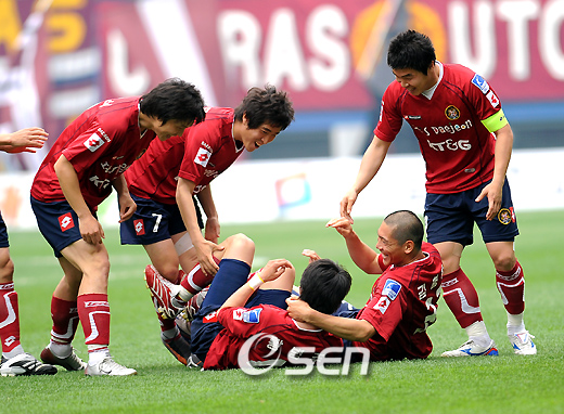 대전 시티즌이 올 시즌 처음으로 '하우젠 베스트팀'에 선정됐다. 김호 감독이 이끄는 대전은 지난 14일 대전 월드컵경기장에서 열린 삼성 하우젠 컵대회 2008 5라운드서 대구FC를 상대로 박주현(전5, 후49)의 두골과 곽철호(전22), 권혁진(후38)의 득점 등 총 4골(×1)로 홈(×0.5)에서 승리(×2)를 거뒀다. 이날 전반 5분 박주현이 터트린 선제골은 경기시작~15분 득점(×0.2) 조건을 충족시켰고, 후반 38분 권혁진과 후반 49분 박주현의 골은 경기종료 15분전~경기종료(×0.2) 조건에 해당돼 추가 점수를 확보했다. 이로써 대전은 파울 33개과 경고 4회 등으로 실점이 있었음에도 홈에서 공격 축구를 선보이며 대승을 거둬 총 5.6점으로 삼성 하우젠컵 2008 5라운드 '하우젠 베스트팀'에 선정됐다. '하우젠 베스트팀'은 공격적이고 박진감 넘치는 경기를 유도하기 위해 주관적인 평가를 배제한 가산점 제도로 2007년부터 매 라운드별로 선정해왔다. '하우젠 베스트팀'은 라운드별 경기를 모두 마친 다음날에 발표한다. 10bird@osen.co.kr