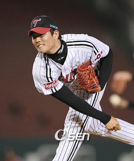 LG 트윈스 신인 투수 정찬헌(18)이 6이닝 1실점 호투를 펼치고도 선발 첫 승을 따내는 데 실패했다. 정찬헌은 지난 14일 잠실 우리 히어로즈전서 프로 데뷔 후 첫 선발등판을 가졌다. 시즌 초 김재박 감독은 "정찬헌은 경기 경험을 쌓아주면서 선발 요원으로 키울 생각이다"라고 밝혔으나 1선발 박명환(31)의 2군행과 외국인 투수 제이미 브라운(32)의 중도퇴출로 정찬헌의 선발 등판 기회는 조금 더 빨리 찾아왔다. 정찬헌은 이경기서 6이닝 4피안타 1실점으로 호투했으나 총 4안타를 치는 데 그친 타선으로 인해 시즌 2패(2승)째를 떠안았다. 최고 145km에 달한 묵직한 직구를 앞세워 사사구 없이 탈삼진 6개를 기록하는 등 과감한 투구로 히어로즈 타선을 요리했으나 운이 없었다. 특히 정찬헌은 4회초서 히어로즈 주포 클리프 브룸바를 상대로 신인답지 않은 노련한 투구를 보여주며 선발 가능성을 더욱 비췄다. 정찬헌은 4회 선두타자 전준호를 우전안타로 출루시킨 후 조재호의 번트 실패로 아웃카운트를 잡는 데는 성공했으나 뒤이어 당겨치는 힘이 좋은 브룸바를 맞았다. 정찬헌은 초구에 볼을 내주며 다소 흔들리는 모습을 보여줬으나 이후 바깥쪽 직구 2개로 브룸바를 삼진 처리하며 자신감을 되찾았다. 스트라이크 존을 살짝 걸쳤던 좋은 직구로 브룸바는 손쓸 틈이 없이 정찬헌에 2연속 삼진을 당했다. 정찬헌은 직구를 앞세운 과감한 승부로 6이닝 동안 73개의 투구수를 기록했다. 계투로 나와서 포크볼, 체인지업 제구에 어려움을 겪으며 25⅓이닝 동안 19개의 사사구를 내주는 등 불안한 모습을 보였던 새내기의 모습은 없었다. 다만 5회 이후에는 아쉬움을 남겼다. 초반부터 직구를 던지다가 5회 이후 변화구 비율을 높이며 히어로즈 타선을 공략하고자 했으나 제구에 어려움을 겪으며 상대에 타이밍을 내주고 말았다. 7회초 브룸바에 내준 좌익선상 2루타 또한 배트 중심에 맞아 빠른 직선타구로 연결되어 실점의 빌미를 내주고 말았다. 정찬헌은 프로 첫 선발등판서 아쉬움을 뒤로 한 채 1패를 더했다. 그러나 18세 소년 정찬헌이 마운드서 보여준 묵직한 직구는 LG 팬들의 기대를 모으기에 충분했다. 투,타 불협화음으로 최하위(13승 27패, 14일 현재)에 처져있는 LG에 '미래형 선발' 정찬헌의 활약은 한 줄기 빛으로 다가왔다. chul@osen.co.kr . . · . . .