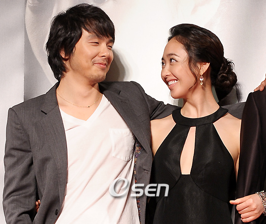 주식을 소재로 한 영화 '작전'의 제작보고회가 6일 서울 장충동 소피텔 앰배서더 호텔에서 열렸다. 이 자리에는 이호재 감독과 주연배우 박용하 김민정 박희순 김무열이 참석했다. 이 영화는 인생의 한방을 위해 주식에 뛰어든 한 평범한 남자가 작전세력에 엮여 모든 것을 건 승부를 펼치는 내용으로 오는 2월 12일 개봉예정이다. 박용하와 김민정이 포토타임을 갖던 중 서로를 바라보며 미소짓고 있다./민경훈 기자 rumi@osen.co.kr