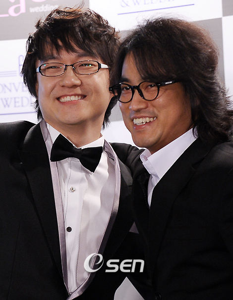 유리상자의 멤버 이세준(37)이 17일 오후 5시 서울 영등포구 여의도동 63시티 웨딩홀에서 영어 동시통역사와 결혼식을 올린다. 방송인 김성주와 김제동이 결혼식 사회를, 팀 멤버인 박승화와 SG워너비가 축가를 각각 맡았다. 결혼식에 앞서 이세준이 간단한 기자회견을 갖고 있을 때 유리상자의 다른 멤버인 박승화가 와서 포옹을 한 후 환하게 웃고 있다./민경훈 기자 rumi@osen.co.kr