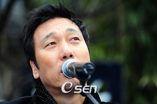 '광화문 연가'를 작곡한 故 이영훈의 노래비 '광화문 연가' 제막식 및 추모식이 14일 오후 서울 덕수궁 돌담길에서 열렸다. 이문세가 추모 공연에서 눈물을 글썽이고 있다. 박상원의 연출과 김승현의 사회로 마련된 이날 추모 노래비 제막식은 이문세, 정훈희, 전제덕, 안성기, 송대관 등 연예인과 오세훈 서울시장이 참석한 가운데 미니 콘서트 형식의 추모 공연과 기자회견 순서로 진행 되었다./윤민호 기자ymh@osen.co.kr