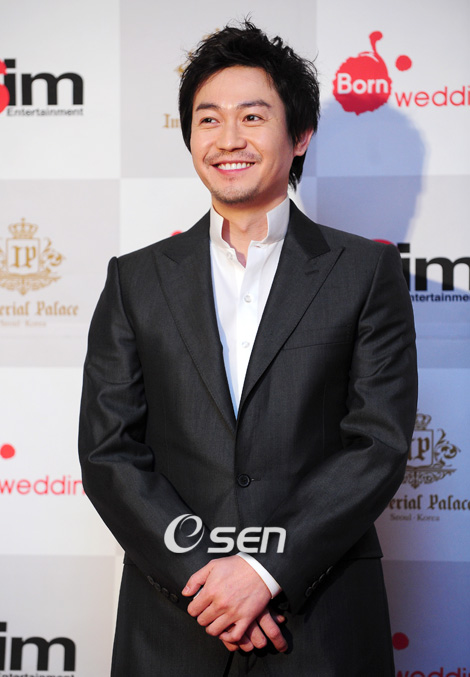 배우 정시아-백도빈 커플이 7일 저녁 서울 강남구 논현동 임피리얼팰리스 호텔에서 백년가약을 맺는다. 축가는 정시아와 함께 MBC에브리원 '무한걸스'에 출연해온 송은이 김신영 백보람 신봉선 황보와 가수 서문탁-티파니가 맡는다. 사회는 백도빈과 한 소속사 식구인 배우 유건이, 주례는 백도빈 가족과 친분이 있는 모 교회의 목사가 맡을 예정이다. 정시아와 백도빈은 지난해 여름 영화 '서바이벌'을 촬영하면서 연인 관계로 발전했고 최근 양가 허락을 받아 결혼 날짜를 결정했다. 하객으로 참석한 박용우가 포토타임을 갖고 있다./윤민호 기자ymh@osen.co.kr