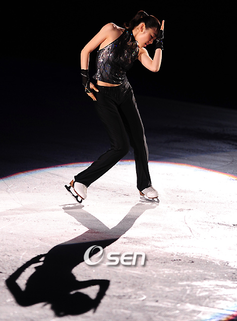 'KCC 스위첸 Festa on Ice 2009'가 25일 고양시 일산 킨텍스 특설링크에서 열렸다. 이번 아이스 쇼는 피겨여왕 김연아를 비롯해 패트릭 챈, 스테판 랑비엘, 조니 위어, 아라카와 시즈카 등 정상급 선수들이 각종 음악 공연과 어우러진 화려하고 풍성한 무대로 오는 26일까지 열린다. 김연아가 섹시한 의상을 입고 연기를 펼치고 있다./고양=손용호 기자spjj@osen.co.kr