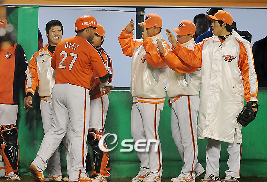 KIA가 홈런포로 맞선 한화에 진땀승을 거두었다. KIA는 2일 군산구장에서 열린 2009CJ 마구마구 프로야구 한화와의 경기에서 선발 구톰슨의 호투와 타선의 집중력을 앞세워 한화의 홈런포를 힘겹게 따돌리고 7-5로 승리했다. 전날 무승부의 아쉬움을 달랜 KIA는 시즌 11승째(2무12패)를 따냈다. KIA는 1회부터 리드를 잡았다. 김원섭의 좌익수 왼쪽으로 빠지는 2루타와 1사 3루에서 장성호의 유격수 땅볼(실책)때 가볍게 선제점을 뽑았다. 2사후 김상현과 나지완의 연속볼넷으로 만든 만루에서 김상훈이 좌익수 앞에 떨어지는 빗맞은 안타를 날려 두 점을 보탰다. 선발 구톰슨의 호투가 계속되는 가운데 한화 타선을 봉쇄한 KIA는 4회초 승부를 결정냈다. 이현곤의 우전안타와 이종범의 3루 내야안타와 장성호의 볼넷으로 찾아온 만루에서 최희섭이 2루수 옆을 빠지는 적시타를 날려 두 점을 뽑았다. 이어 김상현이 다시 좌전적시타로 뒤를 받쳐 6-0까지 달아났다. KIA는 6회말 공격에서도 김원섭의 볼넷과 상대 3루수의 야수선택으로 만든 1사1,3루에서 더블스틸을 감행 승부에 쐐기를 박았다. 구톰슨의 구위에 눌리던 한화는 뒤늦게 홈런포로 추격했다. 7회초 디아즈의 좌전안타와 김태완의 시즌 6호 좌월투런홈런으로 두 점을 따라붙었다. 이어 8회에서도 연경흠이 KIA 좌완 박경태를 상대로 우월솔로홈런, 디아즈의 좌월홈런, 김태완의 세 타자 연속홈런으로 5-7까지 따라붙었다. KIA는 8회 좌완 박경태과 손영민이 한화의 홈런포 3개에 흔들리며 위기를 맞았다. 그러나 손영민이 이후 9회까지 무실점으로 막고 승리를 지켰다. 구톰슨 7회까지 발군의 제구력과 변화구를 앞세워 한화 타선을 5피안타 4탈삼진 2실점으로 막고 시즌 3승째를 따냈다. sunny@osen.co.kr
