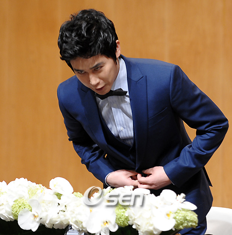 배우 정태우(27)가 8일 오후 서울 장충동 신라호텔에서 한살 연하의 스튜디어스 장인희씨와 결혼식을 앞두고 기자회견을 가졌다. 이 날 결혼식은 비공개로 진행되며 조정민 목사의 주례와 가수 장혜진과 정경미, 박탐희, 한혜진 등이 소속된 온누리 교회 연예인 성경 공부 팀에서 축가를 맡는다. 그는 3년 열애끝에 지난 달 11일 한화 이글스와 롯데 자이언츠 경기가 열린 대전 구장에서 전광판을 통한 프로포즈를 해 큰 화제를 모았다. 기자회견장에 입장한 정태우가 인사를 하고 있다./민경훈 기자 rumi@osen.co.kr