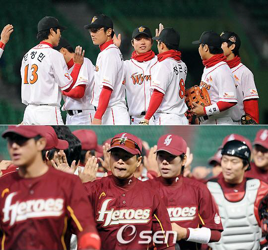 4시간 넘게 접전을 벌였으나 패배나 다름없는 헛품만 팔았다. 홈런을 주고받는 공방전을 벌였으나 연장 12회 무승부로 끝났다. SK와 히어로즈는 8일 인천 문학구장에서 열린 2009 CJ 마구마구 프로야구에서 연장 12회까지 가는 혈투를 벌였으나 4-4로 승부를 가리지 못했다. SK는 올 시즌 전체 연장 10번 가운데 6번을 기록했다. 연장전 성적은 1승 4무 1패이다. 8회까지 양팀은 홈런포를 주고받으며 팽팽한 접전을 펼쳤다. 선취점은 SK의 몫이었다. 3번 타자 박경완은 1사 1루에서 히어로즈 선발인 신인 좌완 강윤구의 몸쪽 직구(143km)를 통타, 비거리 120m짜리 선제 투런 홈런포를 터트렸다. 최근 타격 페이스가 상승세인 박경완은 5경기서 4개의 홈런을 몰아치는 기염을 토하며 시즌 8호째를 기록했다. 3경기 연속 홈런포이기도 하다. 그러자 히어로즈는 3회초 ‘똑딱이 타자’ 정수성이 동점 투런포로 응수했다. 정수성은 2사 1루에서 SK 선발 송은범의 몸쪽 슬라이더를 그대로 끌어당겼다. 포물선을 그리며 날아간 타구는 우측 폴대를 맞고 떨어졌다. 시즌 2호 홈런. 졸지에 동점을 허용한 SK는 4회말 공격서 다시 도망갔다. 선두타자 박경완 볼넷과 이호준, 최정의 연속 안타로 만든 무사 만루 찬스에서 박정권의 밀어내기 볼넷으로 한 점을 달아났다. 좀처럼 추격의 실마리를 풀지 못하던 히어로즈는 8회초 공격서 한 방으로 뒤집기에 성공했다. 구원투수 김성현의 호투를 발판으로 추격전을 펼친 히어로즈는 8회초 선두타자 김민우의 2루타와 폭투로 만든 무사 3루에서 다음타자 강정호가 SK 구원 채병룡으로부터 역전 투런 홈런을 날려 전세를 뒤집었다. 선두 SK는 호락호락하지 않았다. 돌아선 8회말 공격서 박재홍의 볼넷으로 만든 2사 2루에서 박경완이 적시타를 터트려 또다시 동점을 만드는 저력을 보여줬다. SK 우완 선발 송은범은 정수성에게 홈런 한 방을 맞고 5이닝 2실점으로 승리 투수 요건을 채웠으나 구원투수들의 부진으로 승리를 놓쳤다. 히어로즈 신인 선발 강윤구는 최고구속 145km의 빠른 볼을 보여주며 3회까지는 잘 버텼으나 4회 제구력이 흔들리며 볼넷과 연속안타를 내줘 2-3으로 뒤진 가운데 무사 만루에서 강판됐다. 구원등판한 2년차 우완 김성현은 4회부터 7회까지 무실점으로 역투하는 등 가능성을 엿보였다. 8회 동점을 허용, 아깝게 승리를 날렸지만 6이닝 2피안타 3볼넷 7탈삼진 1실점으로 호투했다. 양팀은 연장전에 돌입, 일진일퇴의 공방전을 계속했으나 구원투수들의 호투에 막혀 추가점을 뽑지 못한채 비겼다. 한편 히어로즈 4번 타자 브룸바는 7회초 삼진 아웃후 구심 최규순 심판의 볼판정에 항의하다가올 시즌 첫 퇴장을 당했다. sun@osen.co.kr