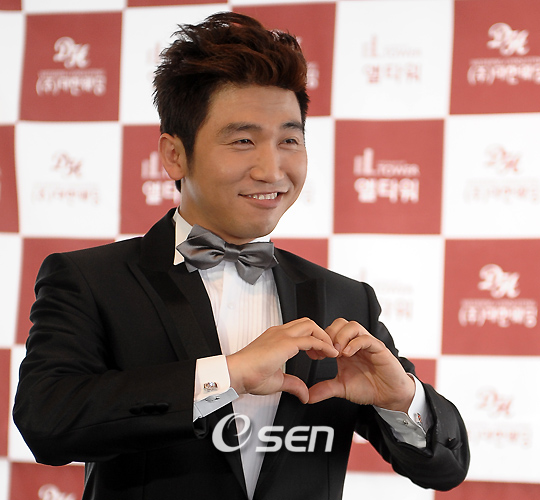 개그맨 유세윤(29)이 17일 오후 서울 서초구 양재동의 한 웨딩홀에서 7년간 사랑을 키워온 4살 연상의 연인 황경희씨와 결혼식을 앞두고 기자회견을 가졌다. 이 날 결혼식은 현 OBS 경인TV의 대표이사이자 방송인 겸 교수인 주철환씨가 주례를 맡으며 유세윤의 절친한 친구이자 동료인 옹달샘(대학 동기시절부터 만든 희극 집단)의 장동민과 유상무가 사회를 본다. 기자회견을 마치고 유세윤이 하트 사인을 취하고 있다./민경훈 기자 rumi@osen.co.kr