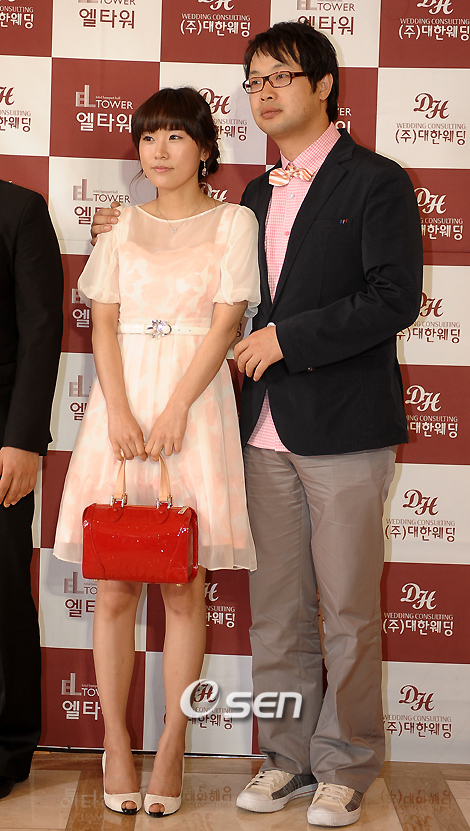 개그맨 유세윤(29)이 17일 오후 서울 서초구 양재동의 한 웨딩홀에서 7년간 사랑을 키워온 4살 연상의 연인 황경희씨와 결혼식을 가진다. 비공개로 진행되는 이 날 결혼식은 현 OBS 경인TV의 대표이사이자 방송인 겸 교수인 주철환씨가 주례를 맡으며 유세윤의 절친한 친구이자 동료인 옹달샘(대학 동기시절부터 만든 희극 집단)의 장동민과 유상무가 사회를 본다. 하객으로 온 개그맨 김경아 권재관 커플이 포토타임을 갖고 있다./민경훈 기자 rumi@osen.co.kr
