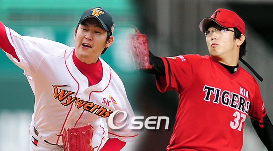 사실상의 에이스 맞대결이다. 26일 인천 문학구장에서 맞붙는 SK와 KIA는 송은범(25)과 양현종(21)을 각각 선발로 내세워 피할 수 없는 자존심 싸움을 벌인다. 프로 7년차 송은범은 올시즌 9경기 중 8경기에 선발 등판, 6승 무패 2.28의 방어율을 기록 중이다. 무엇보다 6승을 모두 퀄리티스타트로 챙겼다. 다승 공동 1위인 송은범은 이닝당 주자허용(WHIP)이 0.994로 리그에서 가장 좋을 뿐 아니라 피안타율도 2할2푼2리로 3위다. 일단 출루를 허용하지 않는다는 점에서 제구력 향상이 돋보인다. 다승 단독 선두로 치고 나갈 수 있을 뿐 아니라 이미 LG, 삼성, 한화, 히어로즈를 상대로 승리를 챙긴 만큼 올 시즌 첫 KIA전을 통해 전구단 상대 승리의 발판을 마련할 수 있게 된다. 지난 14일 잠실 LG전에서는 시즌 첫 완투승까지 거둔 송은범의 상승세가 지속될지 관심을 모은다. 프로 3년차 좌완 양현종은 송은범에 비해 빨리 가능성을 인정받고 있다. 작년 조범현 감독의 꾸준한 기용 속에 올 시즌 KIA 에이스로 발돋움한 케이스다. 올 시즌 8경기에서 5승 1패를 기록 중인 양현종은 2.01로 방어율 부문 선두를 달리고 있다. 49⅓이닝 동안 11실점에 불과하다. 더구나 피안타율에서 1위(.200)를 달리고 있는 만큼 올 시즌 처음 상대하는 SK 타선을 어떻게 봉쇄할 지 관심을 모은다. WHIP가 1.14라는 점에서 송은범과 투수전을 기대해도 좋겠지만 서로 시즌 첫 대결이라는 상대성이 어떻게 작용할지 궁금하다. 더불어 사실상의 에이스 맞대결을 통해 3연패 중인 SK가 되살아날지, 4강 진입을 위한 KIA가 연승으로 탄력을 받을지도 관심의 대상이다. letmeout@osen.co.kr 송은범-양현종.