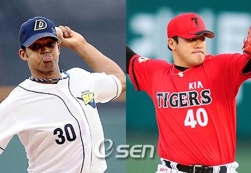 [OSEN=박종규 객원기자] 중간계투진으로 인해 희비가 엇갈린 양 팀, 세 번째 맞대결은 서로의 장점을 살려야 승산이 있다. 1위와 3위의 만남으로 관심을 모으고 있는 두산 베어스와 KIA 타이거즈가 18일 잠실구장에서 치열한 맞대결을 펼친다. 이틀 연속으로 1점차 승부가 이어지며 팬들을 열광하게 했던 경기는 마지막 3차전에서도 긴장을 늦출 수 없는 양상으로 전개될 전망이다. 두산은 후안 세데뇨(26)를, KIA는 서재응(32)을 각각 선발 투수로 예고했다. 지난 16일 경기에서 아킬리노 로페즈의 완투승으로 2-1의 승리를 거둔 KIA는 17일 경기에서 유동훈, 한기주가 차례로 무너지며 우려를 낳았다. 1점차 승부에서 중요한 역할을 맡은 중간계투진이 불안한 모습을 보인다면 선발 투수의 어깨가 더욱 무거워진다. 반면, 두산은 이틀 동안 등판한 5명의 중간계투진이 합계 8⅔이닝 무실점으로 ‘철벽’을 과시했다. 선발 투수들이 비교적 일찍 무너졌으나, 굳건한 허리를 앞세워 KIA에 맞선 것이다. 아직 등판하지 않은 마무리 이용찬을 감안한다면 이날 경기에서도 뒷문 걱정은 없다. 지난 두 경기의 양상으로 볼 때, KIA는 서재응을 최대한 길게 끌고 갈 가능성이 높다. 필승 계투조가 믿음을 주지 못한다면 선발 투수에게 기대를 걸기 마련이다. 반대로 두산은 안정된 중간 계투진 덕분에 세데뇨의 부담이 적다. 지난 5월 말부터 1군 무대에 모습을 드러낸 세데뇨는 두산 코칭스태프에게 아직 믿음을 주지 못하고 있다. 세 차례 선발로 나서 투구수 100개를 넘겨본 적이 없다. 지난 6일 잠실 롯데전에서 5이닝 6실점, 지난 13일 대구 삼성전에서 5이닝 5실점을 기록하고 마운드에서 내려왔다. 18일 현재 1승 1패 평균자책점 6.75를 기록하고 있다. 지난 16일 잠실구장에서 윤석환 코치가 지켜보는 가운데 불펜 투구를 한 세데뇨는 커브를 집중적으로 지도받았다. 당시 윤 코치는 “직구보다 빠르게 던진다는 생각으로 던져라” 는 주문을 한 바 있다. 특이한 궤적을 그리는 세데뇨의 커브가 위력을 발휘할지 지켜보는 것도 이날 경기의 관전 포인트이다. 서재응은 오른쪽 팔꿈치 통증을 털고 지난 11일 목동 히어로즈전에 선발 등판했다. 43일만의 복귀전에서 서재응은 5이닝 6실점으로 다소 부진했지만, 직구의 구위를 되찾았다는 평가를 받았다. 83개의 투구수를 기록했던 서재응은 이번 등판에서 100개 안팎의 공을 던질 전망이다. 올시즌 두산전에 한 차례 선발 등판한 서재응은 6⅔이닝 5안타 3실점으로 제몫을 다했다. 2승 1패 평균자책점 4.67의 시즌 성적을 기록 중인 서재응이 복귀 후 두 번째 경기에서 어떤 투구를 보여줄지 기대된다. 세데뇨-서재응