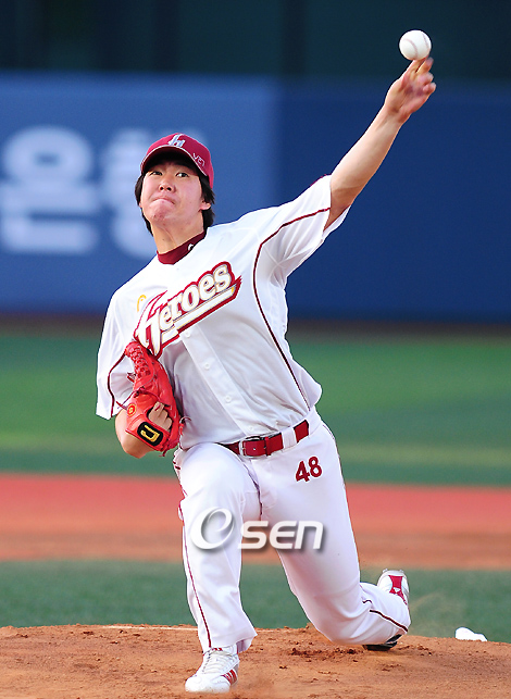 올 시즌 리그 A급 에이스로 급부상한 이현승(26)이 선발 중에 가장 먼저 9승 고지를 넘보고 있다. 이현승은 18일 목동구장에서 열리는 SK와의 홈 3연전 마지막 경기에 선발로 나선다. 전날 팀이 연승행진을 '3'에서 멈췄기에 연패를 막아야 하는 중요한 임무를 부여받은 셈이다. 올 시즌 히어로즈는 SK에 2승 8패 1무로 열세를 보이고 있지만 이번 3연전을 2승 1패로 마친다면 팀 전체가 SK에 대한 자신감을 가질 수 있게 된다. 그만큼 이현승의 호투가 또 한 번 필요한 시점이다. 무엇보다 이현승은 올 시즌 "전구단 상대 승리투수"라는 목표를 내걸었다. 그 만큼 반드시 잡아야 하는 SK다. 올 시즌 14경기 중 13경기에 선발 출장한 이현승은 8승 4패 2.84의 방어율을 기록 중이다. 김광현, 송은범(이상 SK)과 함께 9승인 임태훈(두산)에 이어 나란히 다승 부문 공동 2위를 달리고 있다. 이날 승리할 경우에는 선발 투수로는 가장 먼저 9승 고지를 밟게 될 뿐 아니라 중간투수인 임태훈과 어깨를 나란히 하게 된다. 방어율도 5위에 랭크돼 있어 이 부문 선두인 KIA 양현종(2.19)을 위협할 수도 있다. 이현승은 최근 상승세를 타고 있다. 최근 두 경기 연속 8이닝을 소화했다. 지난 7일 목동 LG전에서는 8이닝 5피안타 1실점했고 지난 13일 사직 롯데전에서는 3피안타 무실점의 절정에 가까운 피칭을 선보였다. 더구나 롯데전을 마친 후에는 적장인 로이스터 감독으로부터 "올 시즌 상대한 투수 중 최고"라는 극찬까지 들었다. 이현승은 지난 4월 25일 문학 SK전에 선발로 나섰지만 패전을 좋지 않은 기억을 가지고 있다. 5⅓이닝 동안 2개의 홈런을 맞고 3실점해 시즌 첫 패배를 안았다. 그러나 홈인 목동구장에 등판한 6경기에서는 3승 2패 2.93의 방어율을 기록하고 있다는 점에서 오히려 자신감에 넘친다. 전구단 상대 승리를 위해서는 SK와 한화만을 남겨둔 만큼 반드시 넘어야 할 고비다. SK는 카도쿠라(36)가 선발로 나선다. 존슨의 대체 용병인 카도쿠라는 12경기(선발 9경기)에 나와 3승 2패 1홀드 4.68의 방어율 기록 중이다. 초반에 비해 구위가 떨어진 상태지만 경기 전반까지는 위력적인 볼을 던지고 있다. 히어로즈를 상대로는 지난달 9일 문학구장에서 6⅓이닝 2실점, 시즌 2승을 거둔 바 있어 자신감을 가지고 있다. 4연승이 좌절돼 주춤했지만 다시 상승세를 노리는 히어로즈와 3연패 뒤 연승으로 다시 선두 재탈환을 노리는 SK. 어느 팀이 승리할 지 더욱 궁금하다. 무엇보다 김광현, 송은범 등 8승 투수들이 일제히 승리를 기록하지 못한 만큼 이현승이 이 기회를 따낼지 가장 관심이 모아진다. letmeout@osen.co.kr 이현승.
