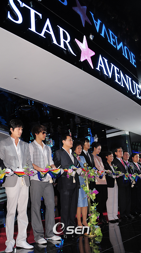 롯데월드 '스타애비뉴' 오픈식이 30일 오후 서울 송파구 잠실 롯데월드 남문 스타 애비뉴에서 유인촌 문화체육관광부 장관과 관계자및 한류스타 비 최지우 송승헌 강지환이 모인 가운데 열렸다. 롯데월드 스타애비뉴에는 한국을 대표하는 한류스타 최지우ㆍ박용하ㆍ송승헌ㆍ지성ㆍ강지환, 그리고 가수 비를 비롯해 인기그룹 동방신기와 빅뱅 등 스타 쇼케이스와 함께 드라마 대장금과 에덴의 동쪽의 촬영세트 등이 전시돼 다양한 체험도 가능하다. 또한, 한류통으로 한국의 미를 널리 알리는 데 공헌한 한국관광 홍보대사인 탤런트 잇코의 코너도 마련된다. 행사장에서 유인촌 문화체육관광부 장관과 관계자및 한류스타 비 최지우 송승헌 강지환이 리본 커팅식을 하고 있다./민경훈 기자 rumi@osen.co.kr
