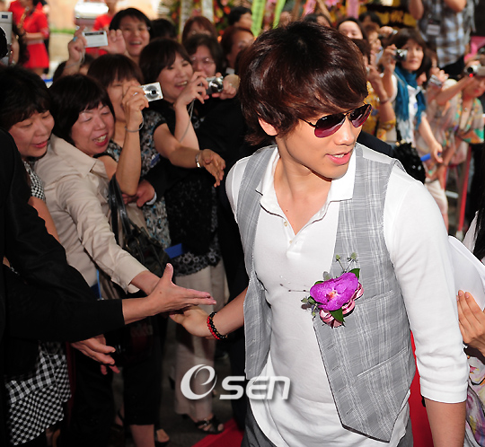 롯데월드 '스타애비뉴' 오픈식이 30일 오후 서울 송파구 잠실 롯데월드 남문 스타 애비뉴에서 유인촌 문화체육관광부 장관과 관계자및 한류스타 비 최지우 송승헌 강지환이 모인 가운데 열렸다. 롯데월드 스타애비뉴에는 한국을 대표하는 한류스타 최지우ㆍ박용하ㆍ송승헌ㆍ지성ㆍ강지환, 그리고 가수 비를 비롯해 인기그룹 동방신기와 빅뱅 등 스타 쇼케이스와 함께 드라마 대장금과 에덴의 동쪽의 촬영세트 등이 전시돼 다양한 체험도 가능하다. 또한, 한류통으로 한국의 미를 널리 알리는 데 공헌한 한국관광 홍보대사인 탤런트 잇코의 코너도 마련된다. 비가 일본 팬들과 악수를 나누며 레드카펫을 지나고 있다./민경훈 기자 rumi@osen.co.kr
