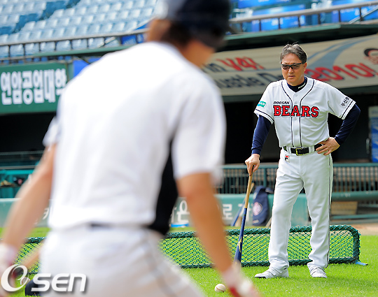 경기전 두산 김경문 감독이 선수들의 번트연습을 지켜보고 있다. /jpnews@osen.co.kr