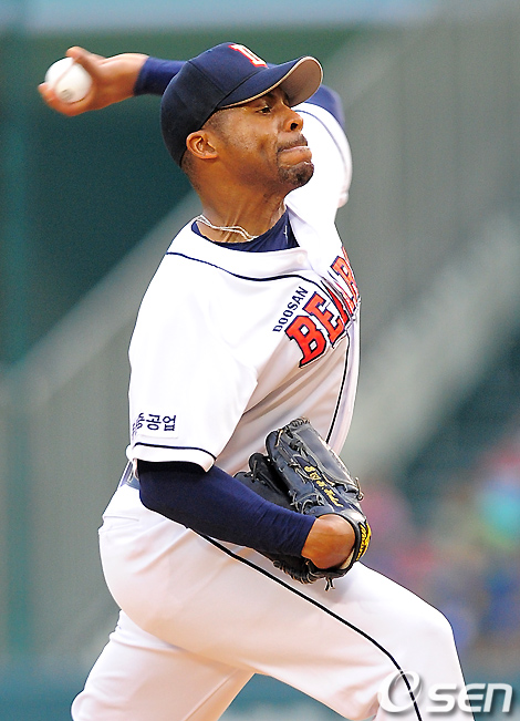 1회초 선발투수로 나선 두산 왈론드가 힘차게 공을 뿌리고 있다. /jpnews@osen.co.kr