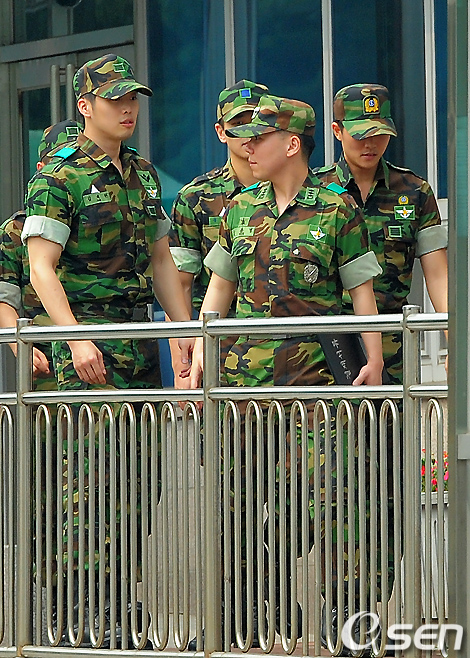 재희가 김재원 등 연예병사들의 배웅을 받으며 걸어나오고 있다. /jpnews@osen.co.kr