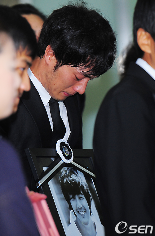 2일 새벽 서울 반포동 강남성모병원 장례식장에 마련된 故 박용하(33)의 발인식이 진행됐다. 소지섭이 故 박용하의 영정사진을 바라보며 눈물을 흘리고 있다.