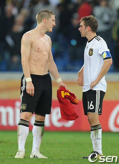 경기 종료 휘슬이 울리자 독일의 슈바인슈타이거와 람이 아쉬운 표정을 짓고 있다. /song@osen.co.kr