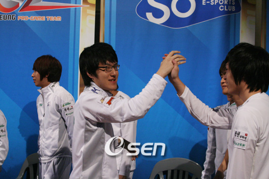 기선제압을 한 쪽은 MBC게임. MBC게임 선봉 이재호는 노배럭스 더블커맨드로 출발하는 전태양의 빈 틈을 중앙 전진 배럭스로 휘저으며 기분좋게 선취점을 MBC게임에 안겼다.
