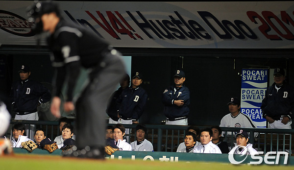 9회말 2사 두산 김동주의 타석때 두산 선수들이 침울한 표정으로 경기를 지켜보고 있다. / soul1014@osen.co.kr