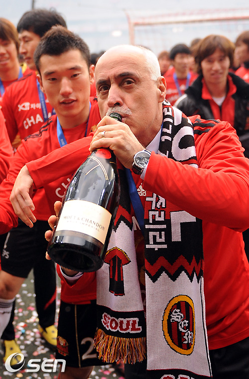 경기 종료 후 빙가다 감독이 샴페인을 마시고 있다. soul1014@osen.co.kr