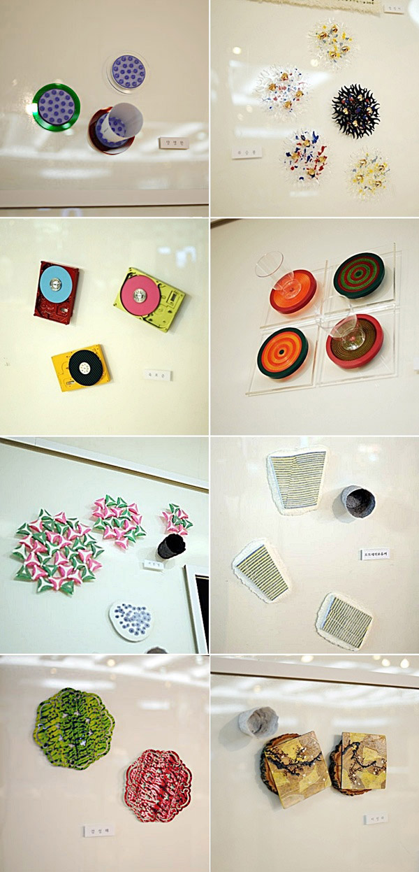 한국방송공사(KBS) 본관 1층 시청자광장 갤러리에서 18일까지 열리고 있는 ‘30人+?의 컵받침전Ⅱ-재미있게 놓기’에서 오는 첫 느낌도 바로 ‘한계의 초월’이다. 컵받침이라는 일상의 소품에다 예술적 감각을 입혔고, 타고난 평면적 운명에 입체적 초월을 시도하고 있기 때문이다.