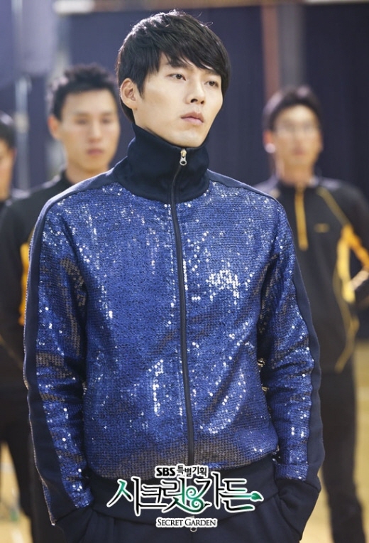 드라마 ‘시크릿가든’에서 까칠한 백화점 사장 김주원으로 분한 현빈은 첫회부터 ‘이태리 장인이 한 땀 한 땀 수공예로 만들었다’는 반짝이 트레이닝복을 입고 등장했다.